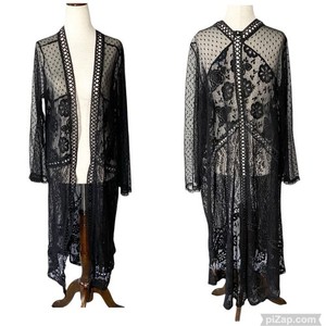 BOUTIQUE bestickt Spitze Kimono Staubtuch Top 1XL schwarz Witchy Whimsigoth