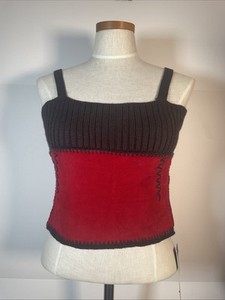 Vintage Guess Jeans Wildleder Festival Top Y2K 90’s Neu mit Etikett Rot Wildleder Braun Tie Back Medium CHF 38,99