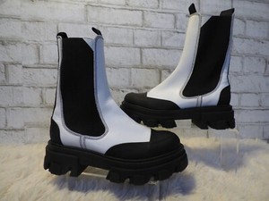 445 $ Ganni weiß schwarz Leder Chelsea Slipper Stiefel 7,5 NEU G283