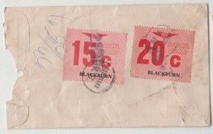Railway parcel stamps Blackburn station Victoria Powergrip Industries cover