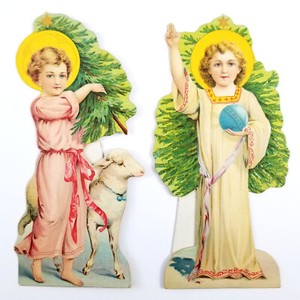 Viktorianische gestanzte Engel Lamm Weihnachtsbäume stehende Staffelei Rückseite Karte 6 7/8" CHF 30,24