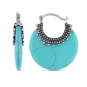 Halbmond Creolen synthetischer Türkis Stein & Silber galvanisiert