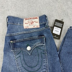 True Religion Rocco Flap Jeans Herren W34 L32 Relaxed Skinny Navy Wash Denim