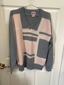 Jaccar of California Cashmere Color Block grau rosa V-Ausschnitt Herren Größe L