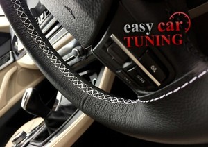Für Mazda 3 MK1 2003-2009 schwarz Echtleder Lenkradabdeckung weiß