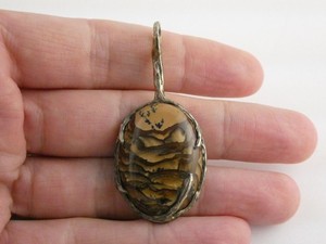 Vintage handgefertigt Sterlingsilber Holz Quarz Einsatz Dreieck Anhänger 8,7 g 1,5 Zoll CHF 58,75CHF 61,85