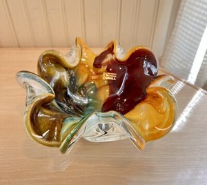 Murano mundgeblasene Glasschale signiert Vetreria Artistica Oball Italien gekräuselt 9" Gold CHF 167,56