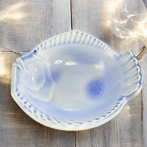 Blau glasierte japanische Keramik Fischschale Sushi Dip Teller Schale Schüssel klein gestempelt