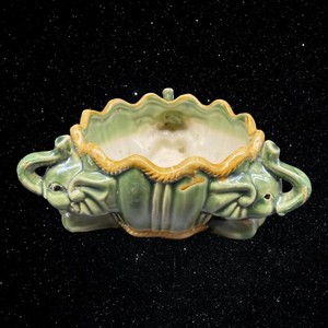 Majolika Kunstkeramik grün dreifach Elefant Dreieck Pflanzgefäß 2,5”T 6”W