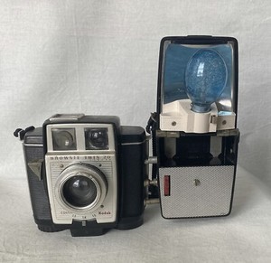 Kodak Brownie Twin 20 Kamera mit Taschenblitzhalter B-1 und Leuchtmitteln
