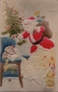 WEIHNACHTSMANN KOMMT AUS DEM SCHORNSTEIN SIEHT SCHLAFENDES MÄDCHEN - GEPRÄGT WEIHNACHTSPOSTKARTE CHF 6,36