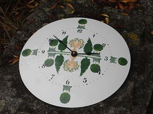 HORLOGE EMAILLEE BOIS MASSIF EMAIL Jardin PENDULE EMAIL VERITABLE FAB en FRANCE