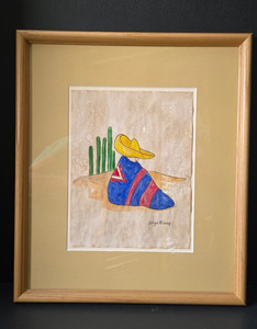 Diego Rivera Zeichnung auf Papier (Handarbeit) signiert und gestempelt Mischtechnik gerahmt
