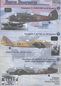 PSL72082 Print Scale Decals 1:72 Bristol Beaufighter Part 1