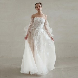 Boho Spitze Pailletten Brautkleid Schulterfrei 3D Blumen Applikationen Brautkleid CHF 120,61CHF 126,95
