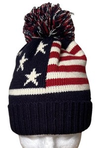 Amerikanische Flagge USA Olympia Strickmütze Beanie mit Bommel Streifen Stern blau rot
