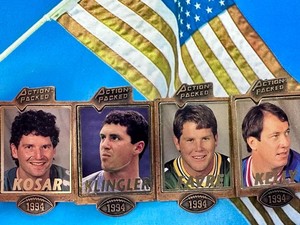 NFL ACTION PACK NFL QB CLUB PINS 1994 KELLY-KLINGLER-FAVRE-KOSAR PACKAGE DEAL