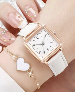 Damen Frauen Quarz Armbanduhr Uhren mit Lederarmband weiß Herzarmband
