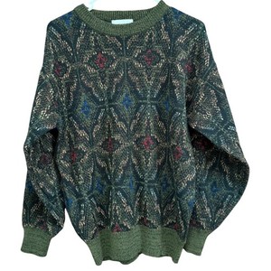 Vintage Geometrischer Strickpullover Rundhals Oversize Pulli Opa Style