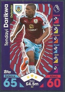 Topps Match Attax 2016-17 #043 - Burnley - Tendayi Darikwa