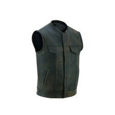Distressed Brown Men's Motorcycle Leather Vest with Dual Closure and Gun Pocket