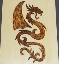 Hand Burnt Dragon Design Wood Box with Two New Diamond Playing Card Decks