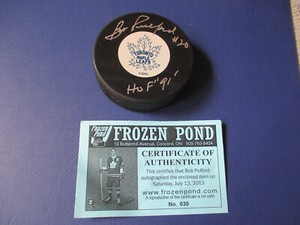 BOB PULFORD HOF 91 Toronto Maple Leafs handsigniert signed Puck Frozen Pond *