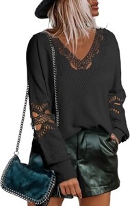 Damen Pullover Herbst Trendy Aushöhlen Spitzenbesatz V-Ausschnitt Strick Drop Shoulder - 2XL CHF 14,31
