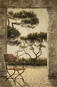 GARTENTORSZENE 42" 106CM BELGISCHER TANDWANDBEHANG, GEFÜTTERT, STABÄRMEL