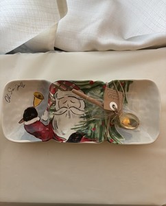 Mud Pie Ceramic Christmas 3 Compartment Tray w/spoon Santa, New