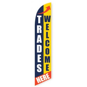 Trades Welcome Here 12ft Feather Banner Swooper Flag - FLAG ONLY