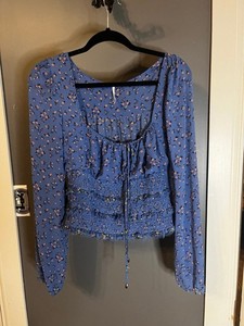 Free People Gr. Large blau geblümt Bluse Top