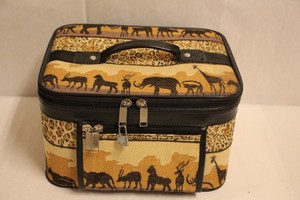Vintage Safari Tier Gobelin Make-up Zug Reise Gepäck Tasche Koffer mit Schloss & Schlüssel