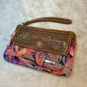 Aeropostale Handgelenktasche Clutch Handschlaufe Tropical Stoff Vegan Leder Rosa Reißverschluss