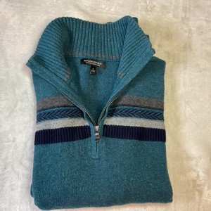 Banana Republic Pullover 1/4 Reißverschluss Streifen Herren Lg italienische Wolle türkis blau grün grau
