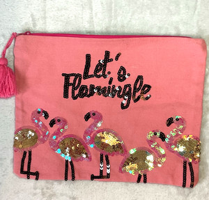 Pailletten Flamingo Kosmetiktasche Geldbörse Clutch rosa Reißverschluss Reise Strand 12x9