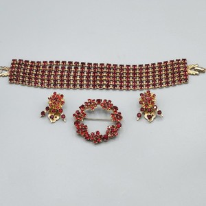 Vintage Siam roter Granat Strass goldfarben Manschette Armband Brosche Ohrringe