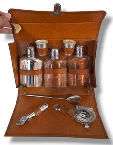 Vintage Barkeeper Leder Reiseset mit Etui 60er Jahre