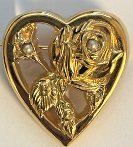 Vintage Brosche Anstecknadel - Kunstperle goldfarben Blätter Blatt filigran Wirbel abstrakt Draht CHF 6,37