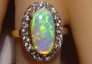 Australischer Opal- und Diamantring in Edelsteinqualität, massiv 14 Karat Gelbgold, Helligkeit 5 CHF 1.091,48