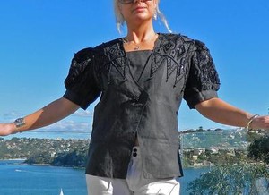 VINTAGE 1980s C Water Original Handpaint Australia Resortwear Gold Coast Blouse