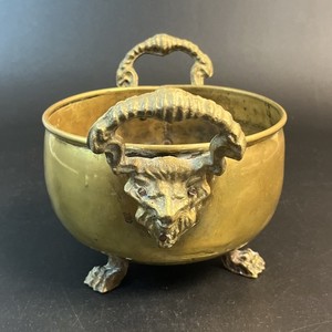 Vintage Messing verziert Mittelstück Schüssel Topf Löwenkopf Griff Kralle Fuß 6,5" Pflanzgefäß CHF 36,88