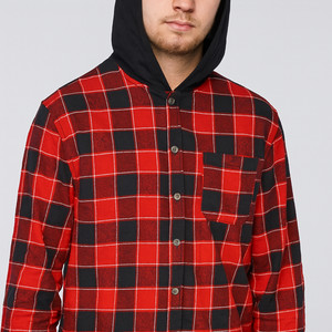 Art Class Herren XL rot schwarz kariert Kapuze Flanell Knopfleiste Langarm Hemd
