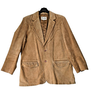 Vintage Sully Jacke Herren 44R hellbraun Wildleder Western Dotter Stickerei Sport Mantel Cowboy