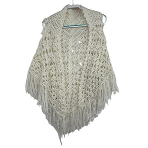 Vintage 70er Jahre handgehäkelt Fransen Schal creme Boho Hippie Festival Halstuch Japan