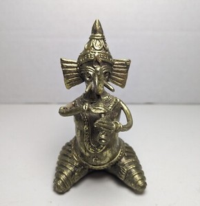 Vintage Musical Ganesha handgefertigte Dhokra Messing Figur 3,5"