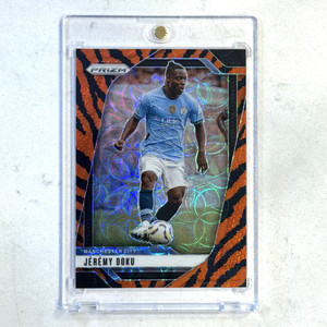 2024-25 Panini Prizm #6 Jeremy Doku Choice Tiger Stripe Prizm Case Hit SP