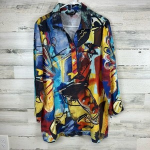Ali Miles Tunika Art to Wear Schlitz Flatterärmel Boho Abstrakt Gr. XL Bunt