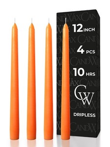 12 Zoll Orange Spitzkerzen 4er Set — Duftlos tropffrei rauchfrei langsam Bur...