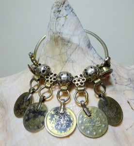 Libanon Halāq Silber vergoldet Ohrring 19. Jh. Osmanische Levante Tripolis Münzen einzeln